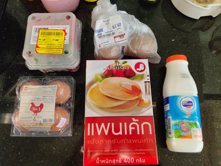 1.แป้งแพนเค้กสำเร็จรูป หาซื้อได้ตามซุปเปอร์มาร์เก็ตทั่วไป