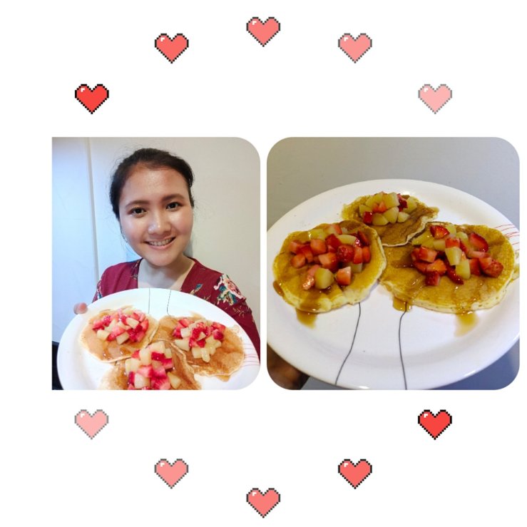ตกแต่งแพนเค้กด้วยผลไม้ ราดน้ำผึ้งก็กินได้เลยจ้า
