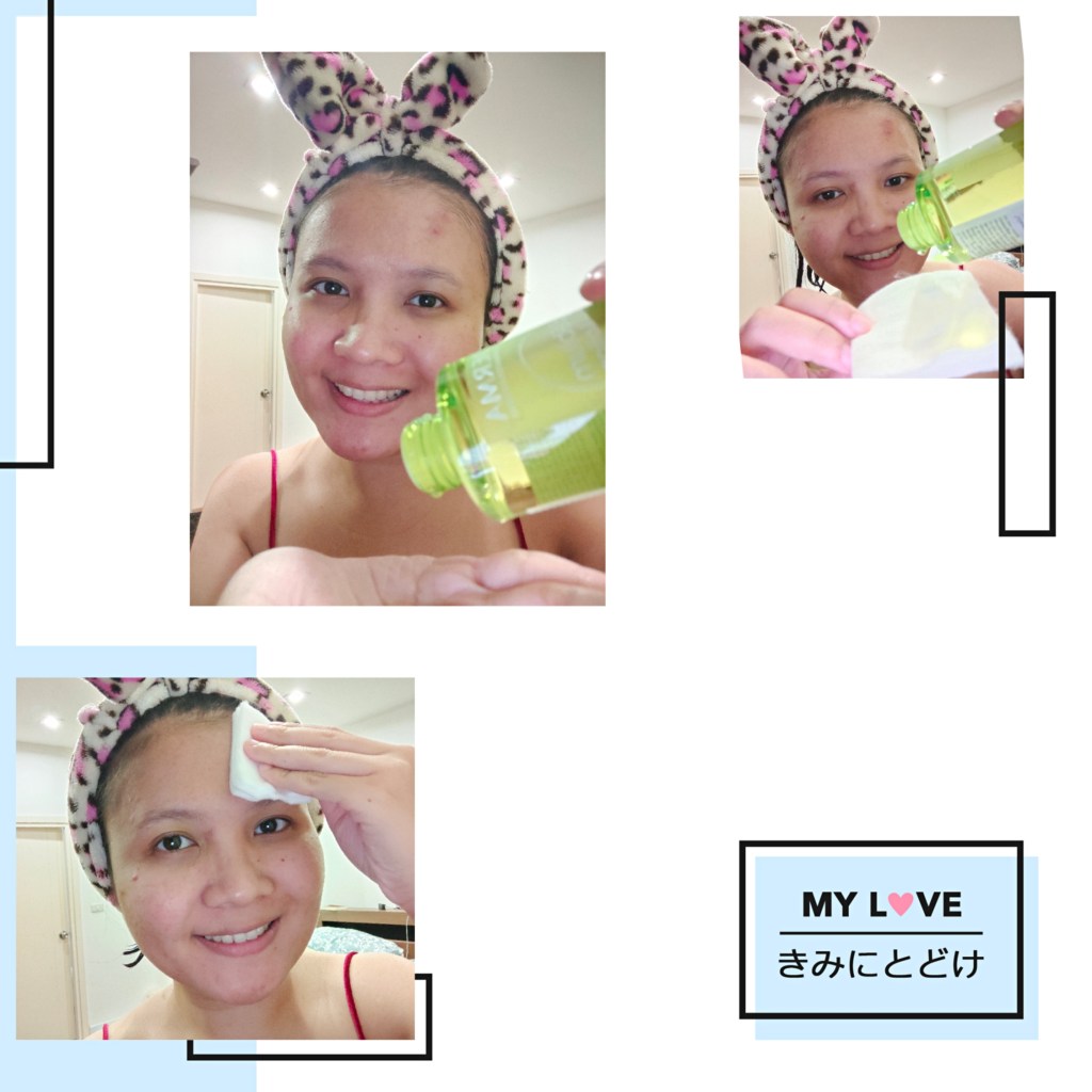 แบบที่ 2 เทโทนเนอร์ซีเบี่ยมโลชั่นลงบนสำลี และเช็ดให้ทั่วใบหน้า